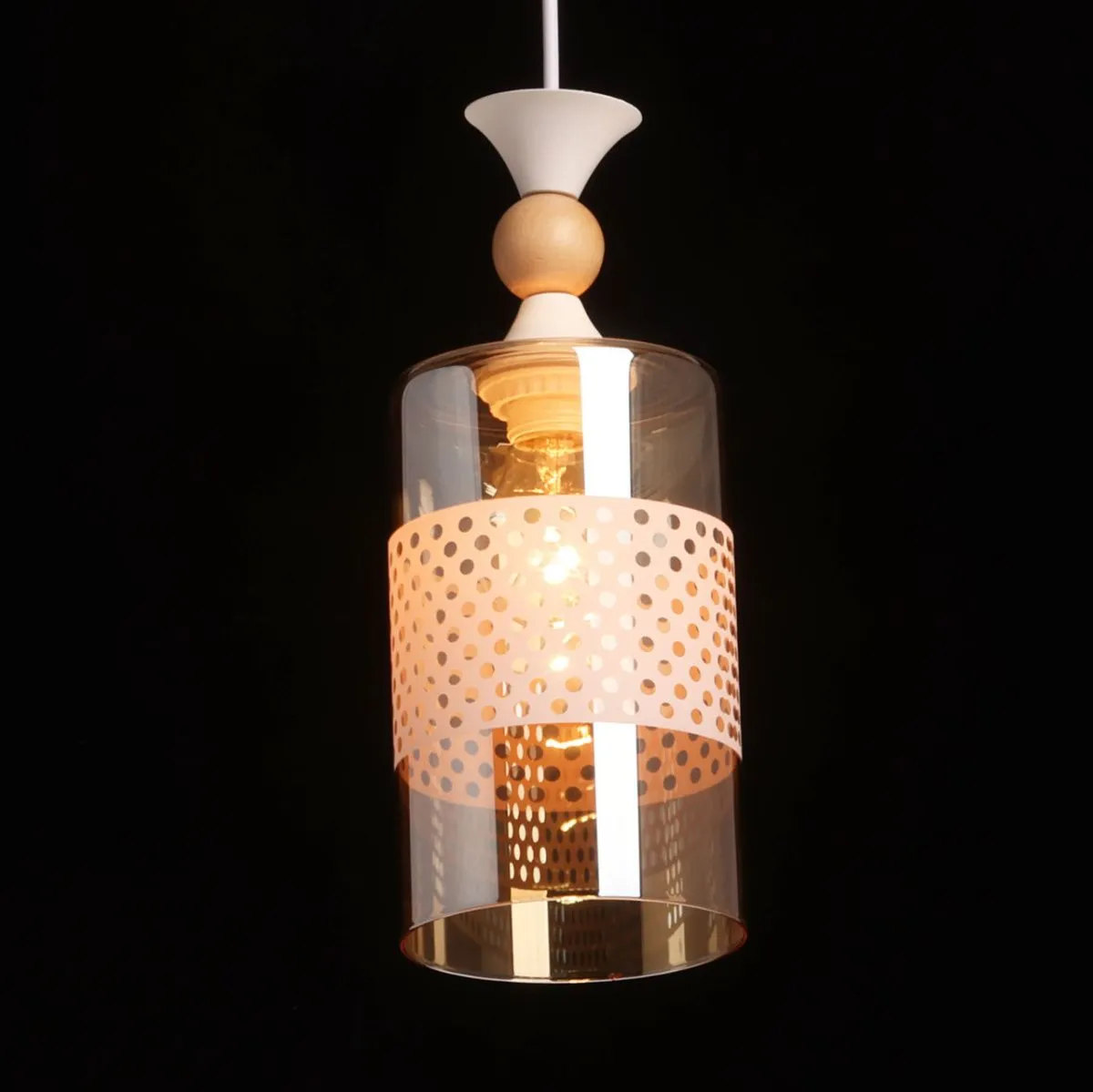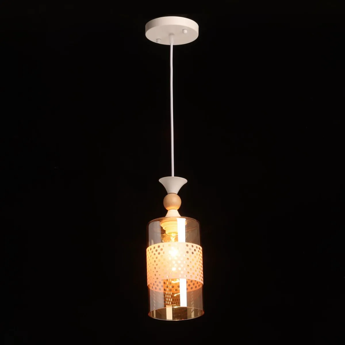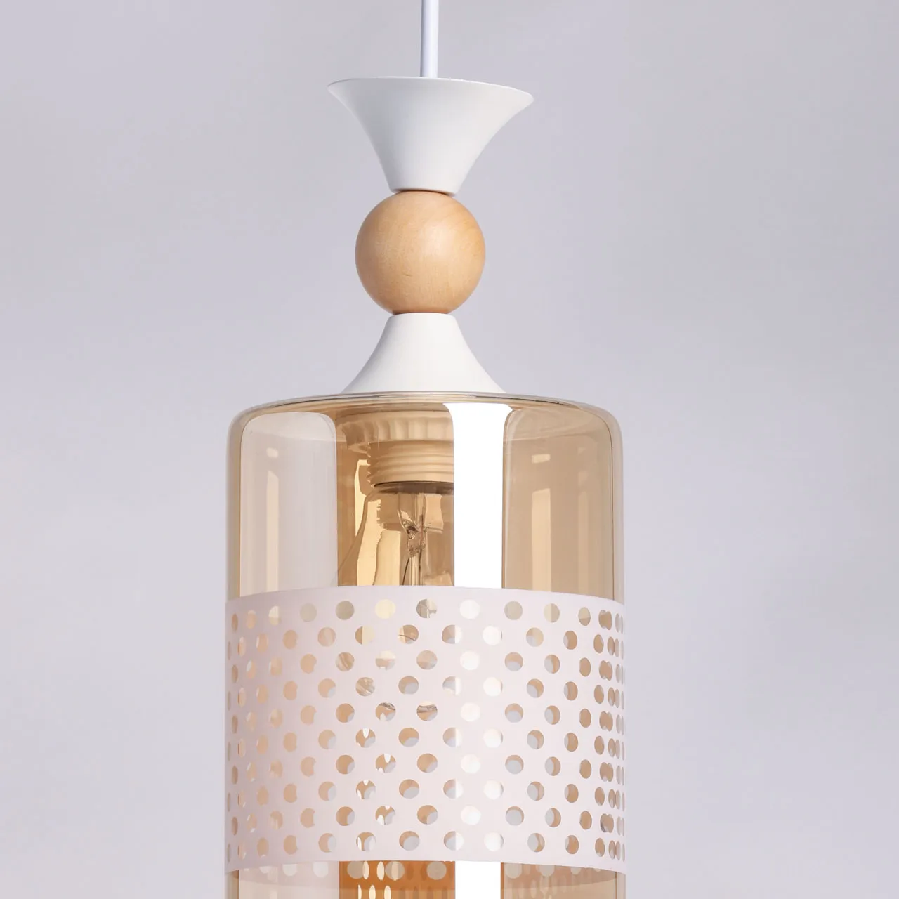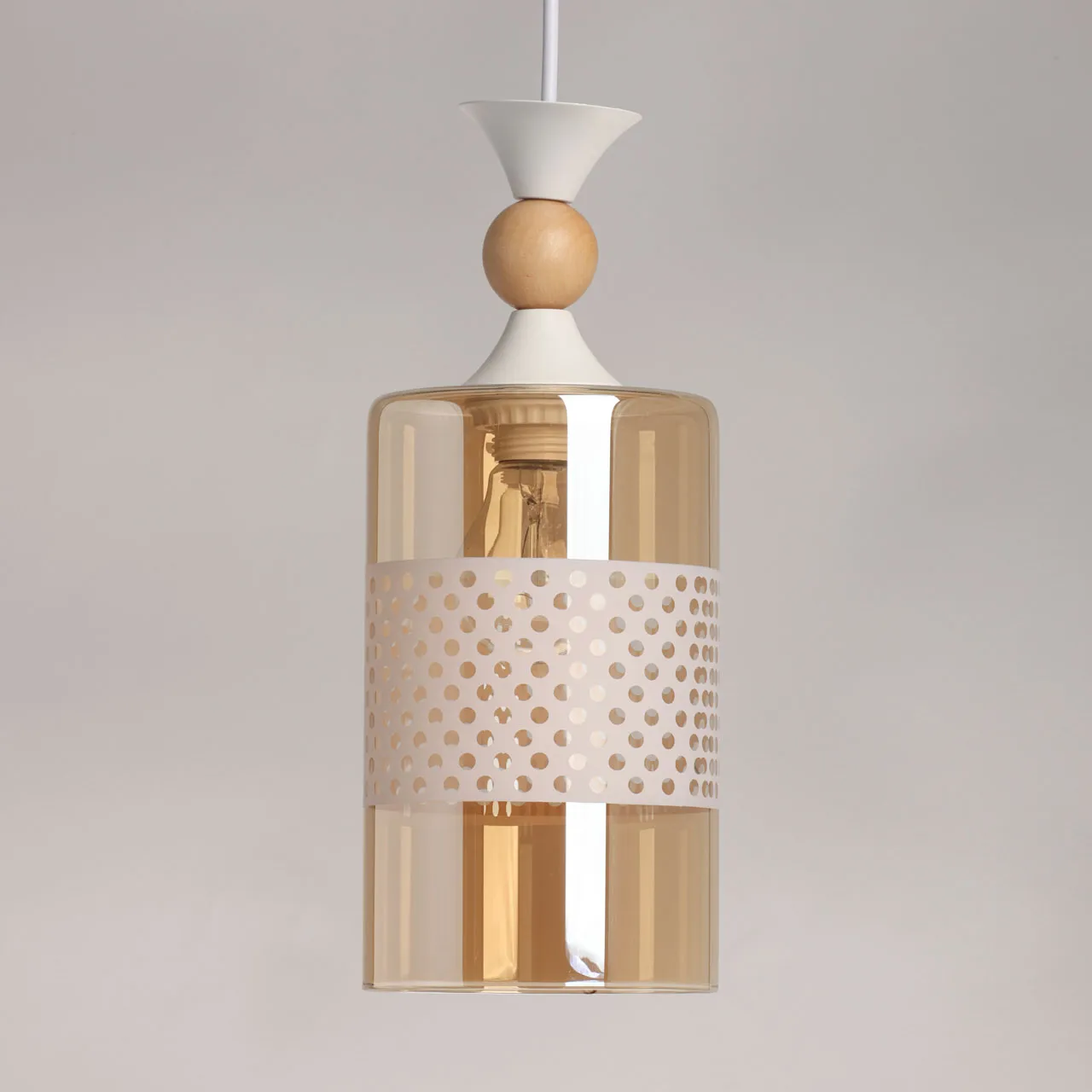 Основание/ металл/ белый Плафон/ стекло/ коньяк, белый Декор/ дерево/ светлый
