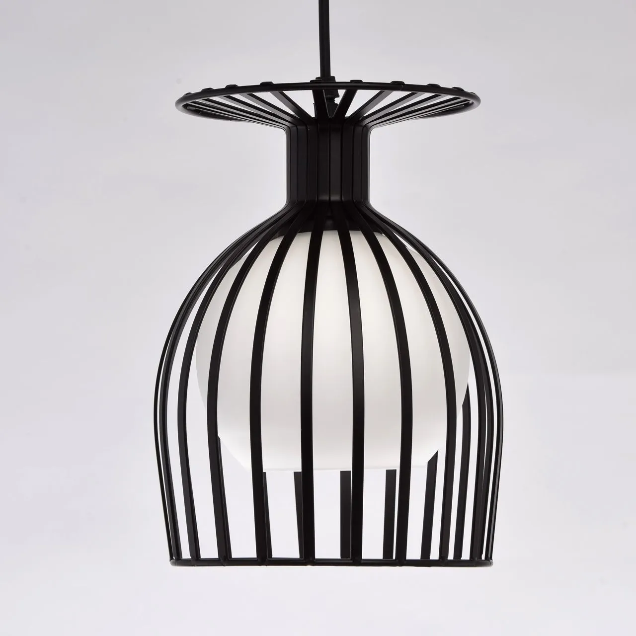 Металлическое основание черного цвета. Плафон: белое матовое стекло.