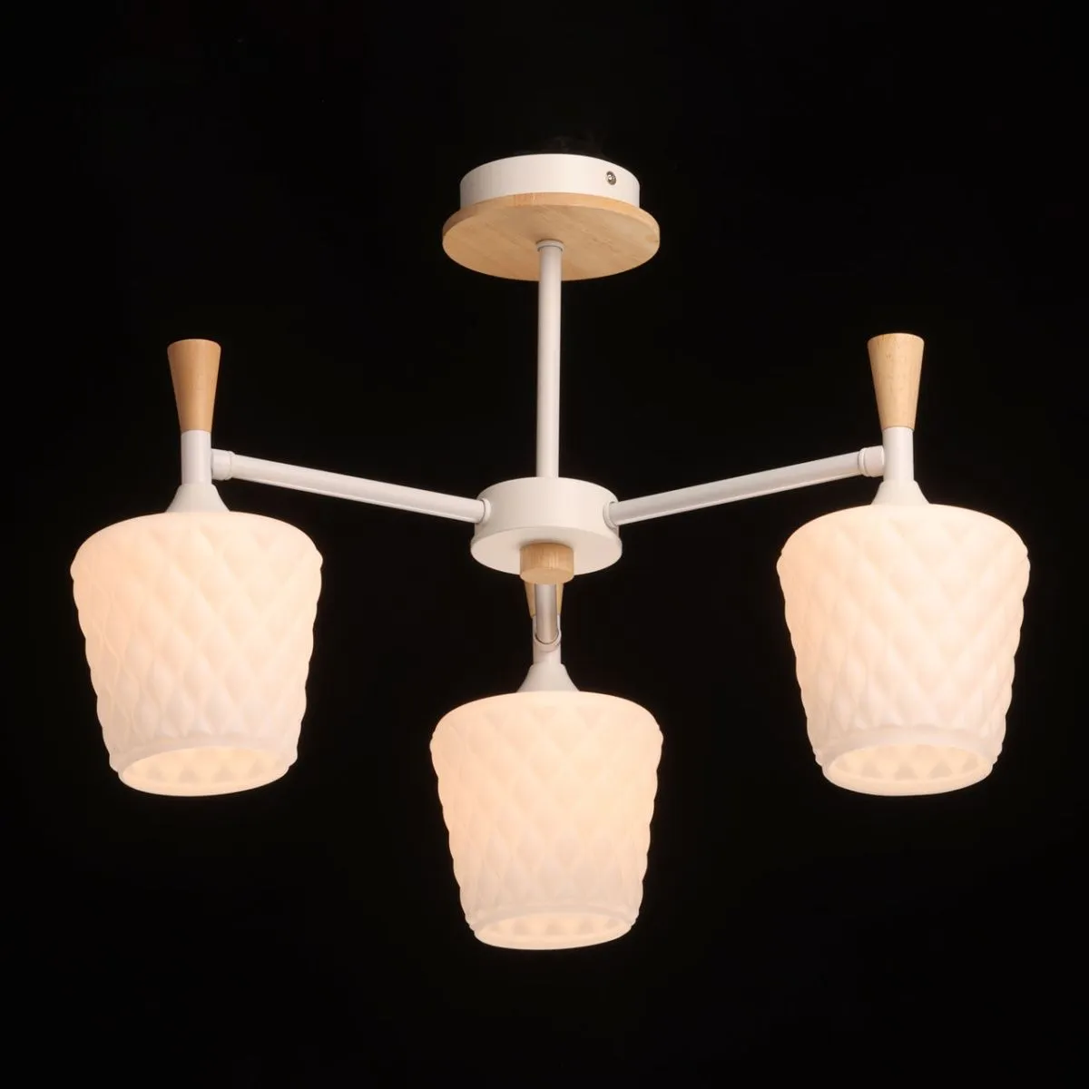 Основание/ металл/ белый Плафон/ стекло/ белое Декор/ дерево/ светлый