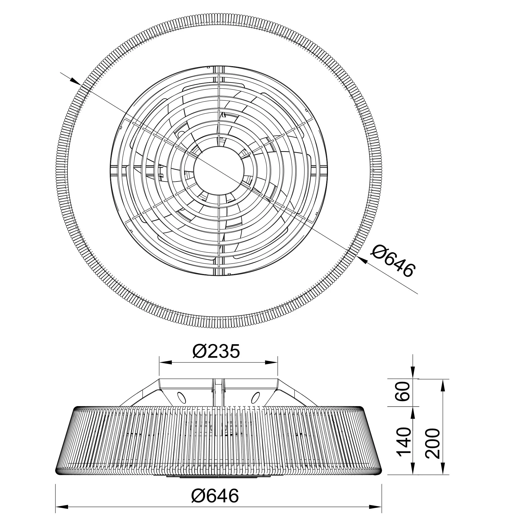 Вентилятор мощностью 35 Вт и 25 Вт установлен за сеткой абажура с замысловатым узором, который создает оптическую иллюзию и добавляет вентилятору эстетичности.